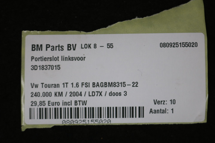 Terug / interieur / Deur / Portier Sloten / Portierslot linksvoor VW Touran 1T