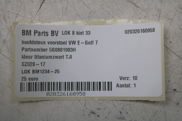 Hoofdsteun voorstoel kan L en R VW E-Golf 7 TJI