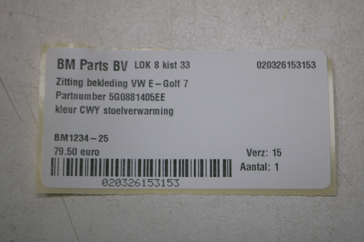 Terug / interieur / Losse Interieurdelen / Losse Interieur Delen / Zittingbekleding kan L en R VW E-Golf 7 CWY