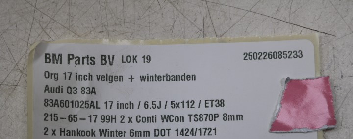WINTER! ORIGINEEL! 17 inch S-Line velgen Audi Q3 83A! 83A601025AL