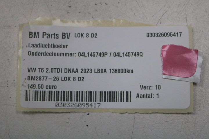 Laadluchtkoeler VW Transporter T6