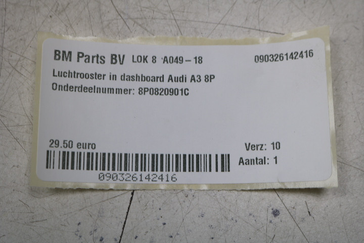 Luchtrooster in dashboard Audi A3 8P