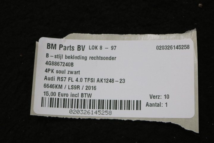 Terug / interieur / Vloer / B Stijl / B-stijlbekleding rechtsonder Audi RS7 4G FL