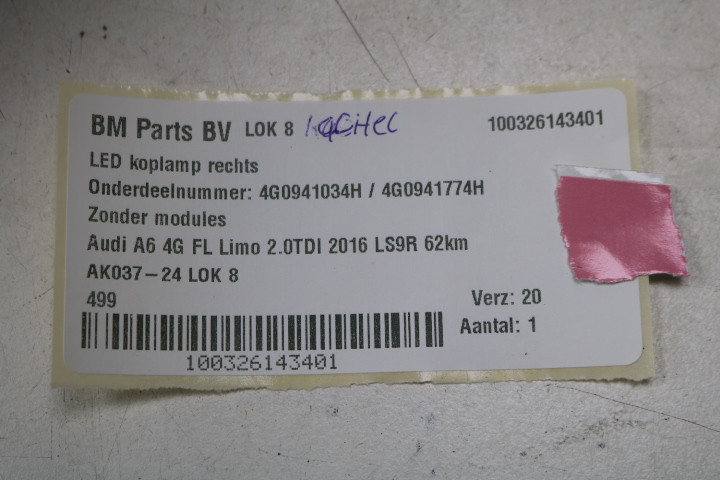 LED koplamp rechts Audi A6 4G FL 62km oud