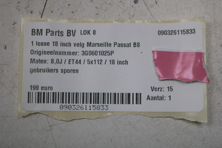 ORIGINEEL! 1 losse 18 inch Marseille velg VW Passat 3G! 3G0601025P