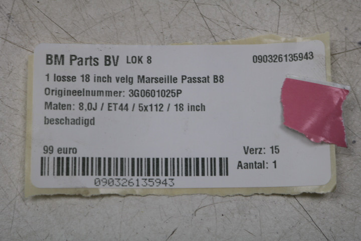ORIGINEEL! 1 losse 18 inch Marseille velg VW Passat 3G! 3G0601025P