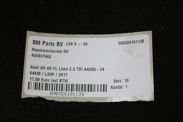 Raammechaniek RV Audi A6 4G