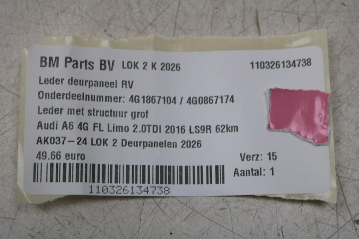 Leder deurpaneel RV Audi A6 4G FL 62km oud