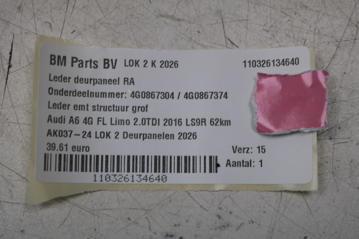 Leder deurpaneel RA Audi A6 4G FL 62km oud