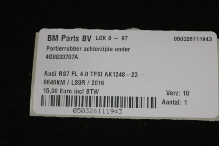 Portierrubber achterzijde onder kan L en R Audi RS7 4G FL