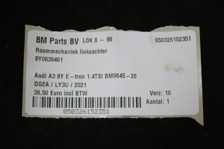 Raammechaniek LA Audi A3 8Y