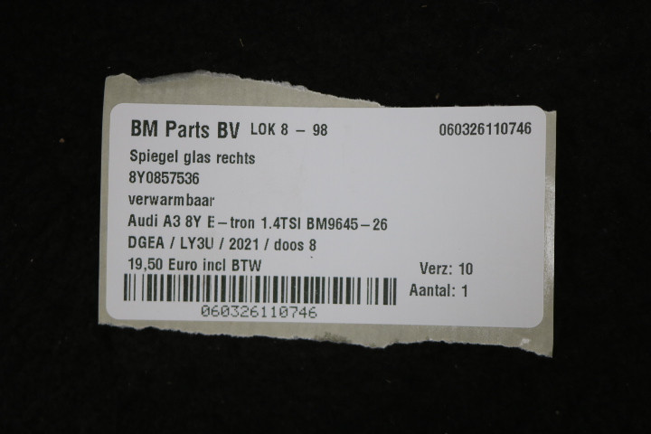 Spiegel glas rechts Audi A3 8Y