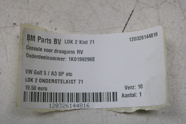 Console voor draagarm RV VW Golf 5 / A3 8P