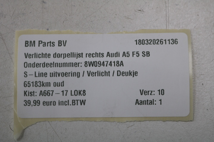 Verlichte S-Line dorpellijst rechts Audi A5 F5 SB