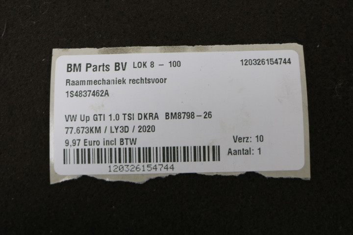 Raammechaniek rechtsvoor VW up! GTI