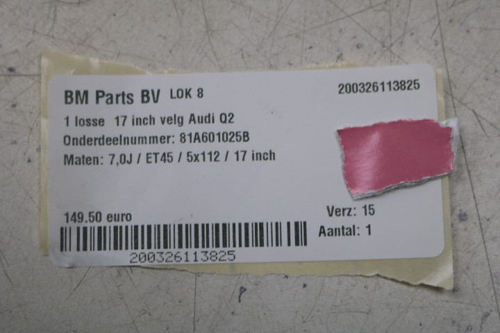 ORIGINEEL! 1 losse 17 inch velg Audi Q2! 81A601025B