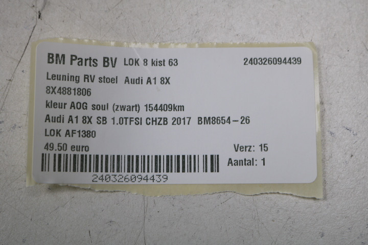 Leuning RV stoel Audi A1 8X SB A0G