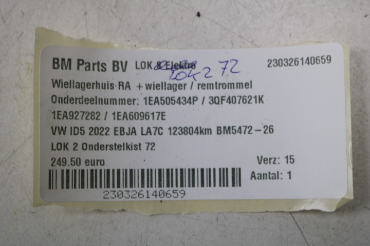 Wiellagerhuis RA + wiellager / remtrommel VW ID5 Pro