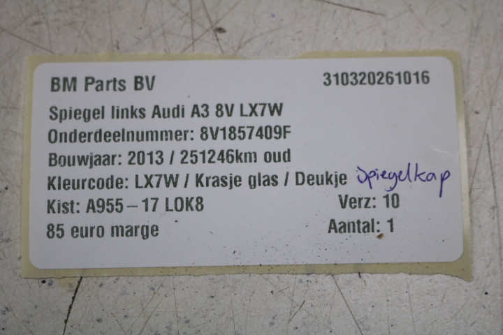 Terug / Exterieur / Spiegels / Linker Spiegel / Spiegel links Audi A3 8V LX7W