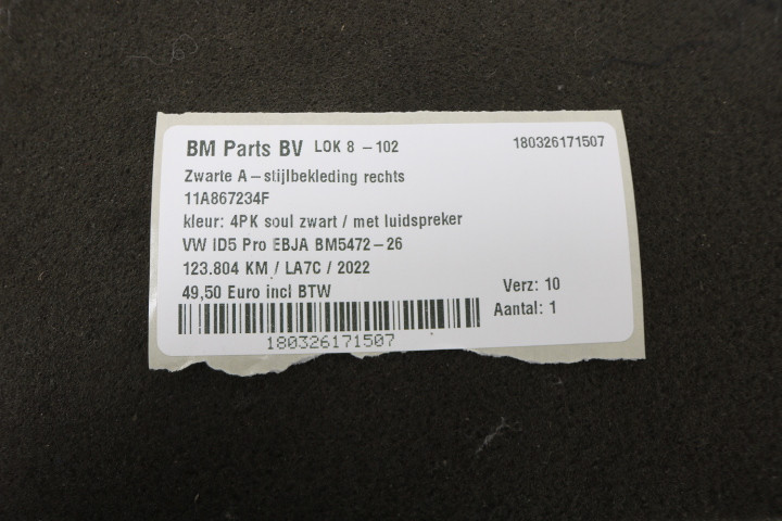 A-stijl bekleding rechts zwart VW ID5 Pro