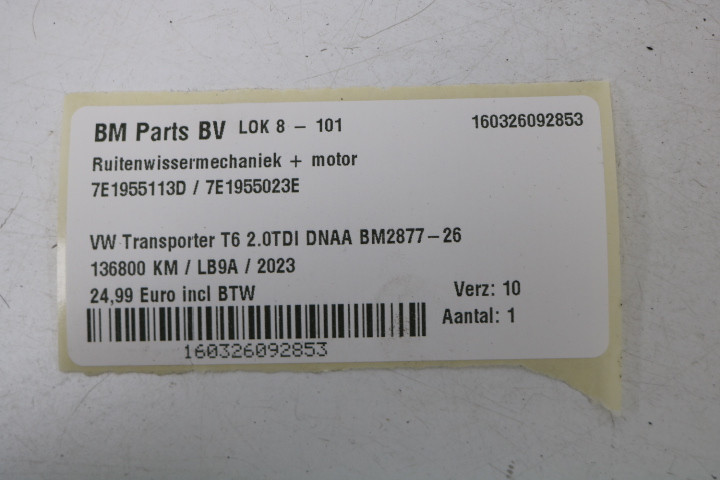 Ruitenwissermechaniek + motor VW Transporter T6