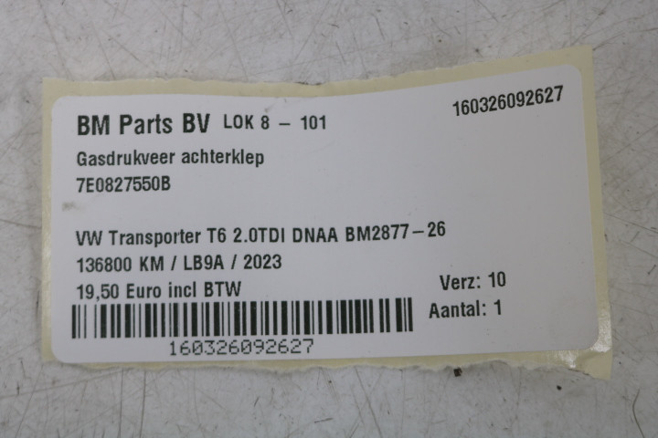 Gasdrukveer achterklep VW Transporter T6