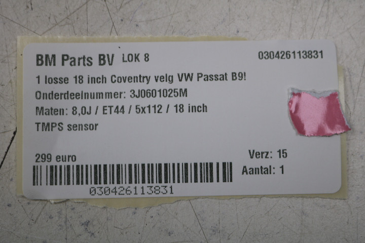 ORIGINEEL! 1 losse 18 inch Coventry velg VW Passat B9! 3J0601025M