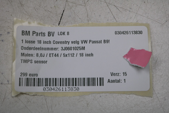 ORIGINEEL! 1 losse 18 inch Coventry velg VW Passat B9! 3J0601025M