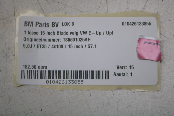 • Origineel hoort deze velg onder een Volkswagen E-Up / Up.