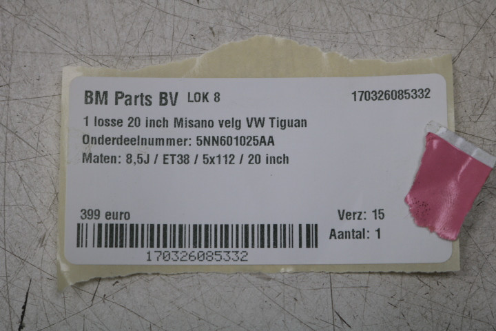 NIEUWSTAAT! ORIGINEEL! 1 losse 20 inch Misano velg VW Tiguan 5NA! 5NN601025AA