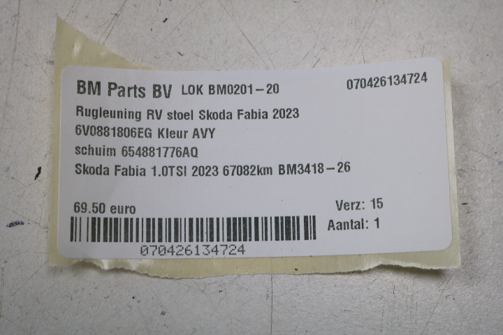 Rugleuning stoel RV Skoda Fabia 4 AVY