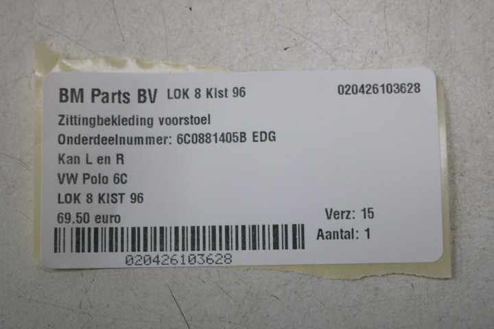 Zittingbekleding voorstoel kan L en R VW Polo 6C EDG