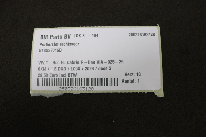 Portierslot RV VW T-Roc FL 6km oud