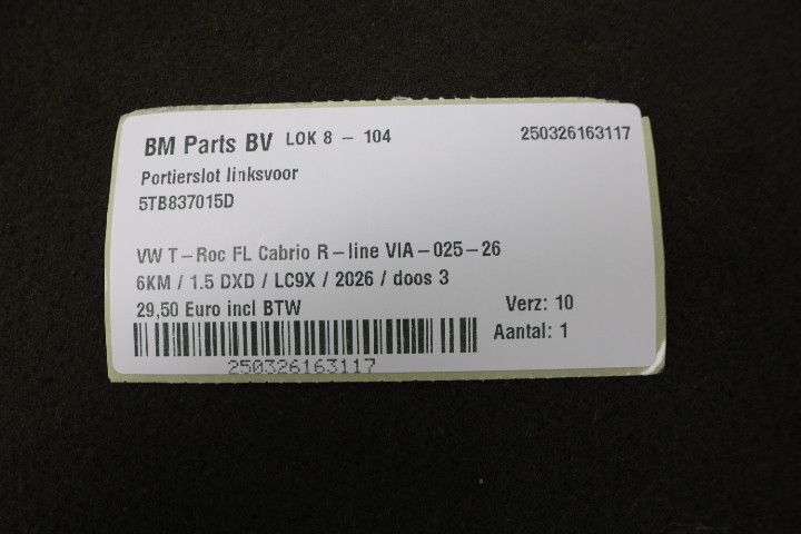 Portierslot LV VW T-Roc FL 6km oud