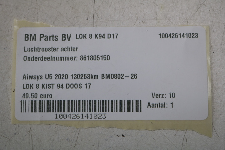 Luchtrooster achter Aiways U5