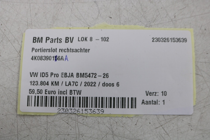 Terug / interieur / Deur / Portier Sloten / Portierslot rechtsachter VW ID5 Pro