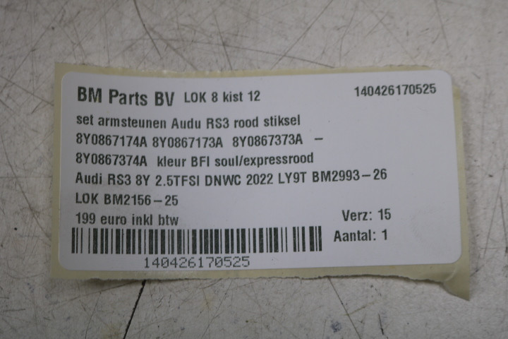 Set armsteunen Audi RS3 8Y BFI