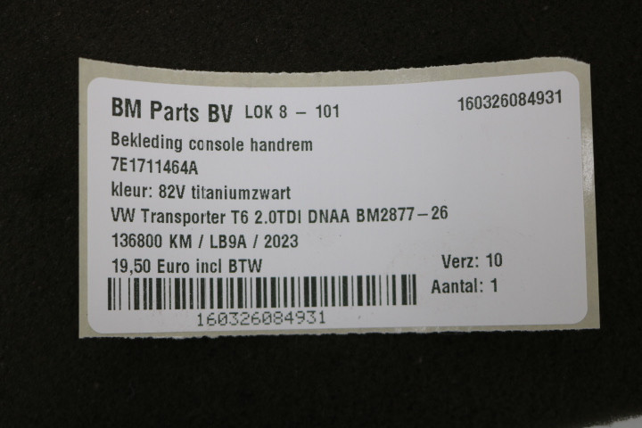 Bekleding console handrem VW Transporter T6