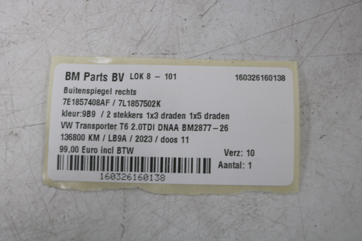 Buitenspiegel rechts VW Transporter T6 9B9