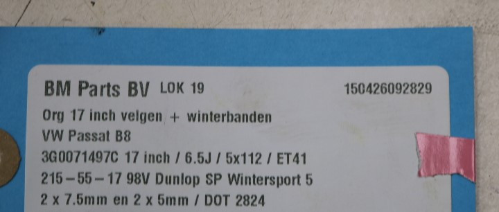 WINTER! ORIGINEEL! 17 inch velgen VW Passat 3G B8! 3G0071497C
