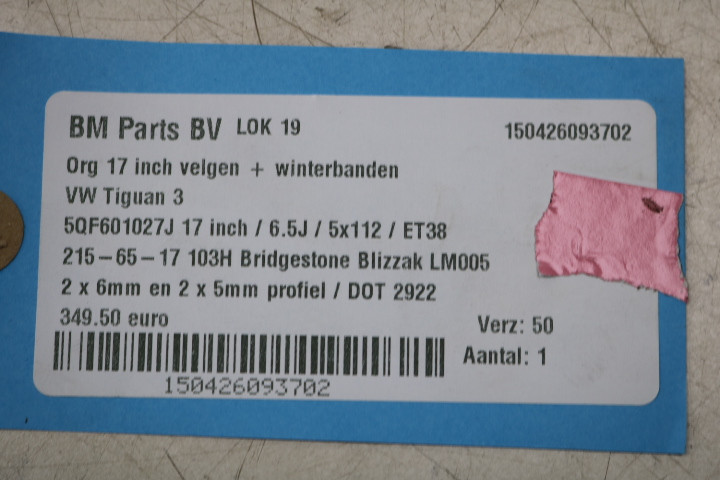 • Maten: 6,5J / ET38 / 5x112 / 17 inch