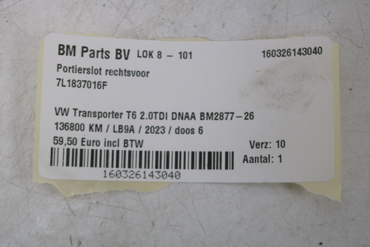Portierslot rechtsvoor VW Transporter T6