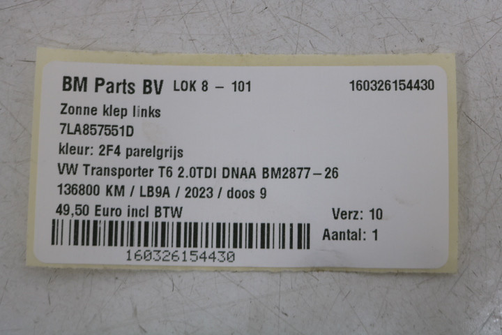 Zonneklep links VW Transporter T6
