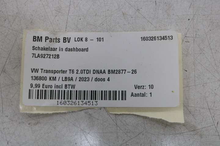 Schakelaar in dashboard VW Transporter T6
