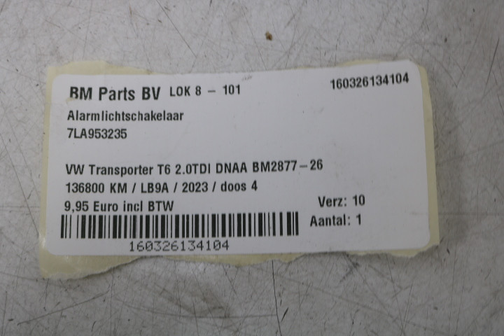 Alarmlichtschakelaar VW Transporter T6