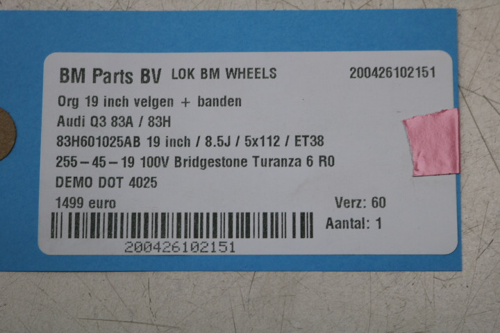 • Origineel past deze set velgen onder een Audi Q3 83H, ook past de set onder een Audi Q3 83A.
