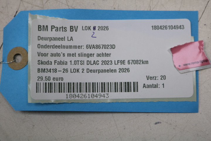 Deurpaneel LA Skoda Fabia 4 TMK
