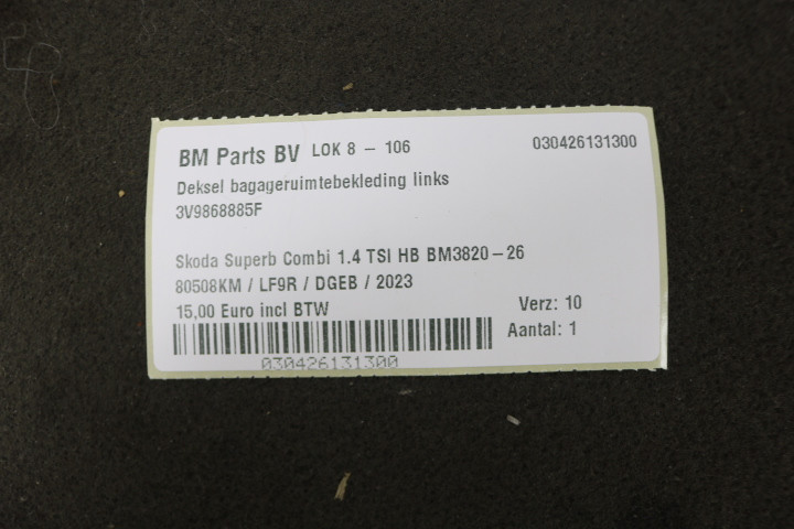 Deksel bagageruimtebekleding links Skoda Superb combi 3