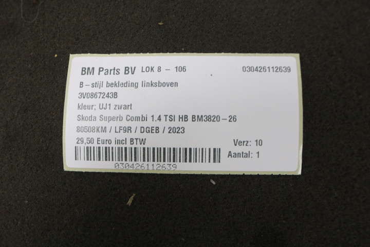 B-stijl bekleding linksboven Skoda Superb 3