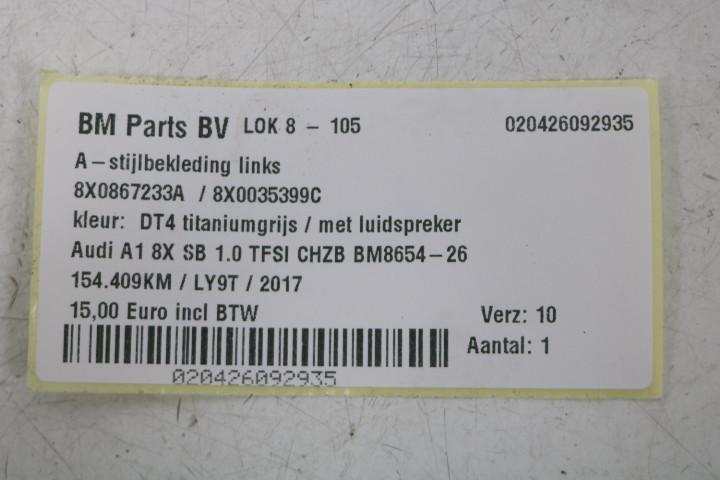 A-stijlbekleding links boven Audi A1 8X